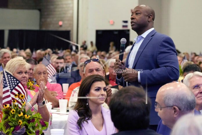 Cover Photo: Republican presidential candidate Sen. Tim Scott, R-S.C., right, walks by Casey DeSantis, wife of GOP rival and Florida Gov. Ron DeSantis, center, as he speaks at Rep. Jeff Duncan’s Faith & Freedom BBQ fundraiser, Aug. 28, 2023, in Anderson, S.C. Republicans are responding to a late summer spike in COVID-19 by raising familiar fears that government-issued lockdowns and mask mandates are on the horizon. GOP presidential hopefuls including Florida Gov. Ron DeSantis, South Carolina Sen. Tim Scott and former President Donald Trump have spread this narrative in the last week. (AP Photo/Meg Kinnard, File)