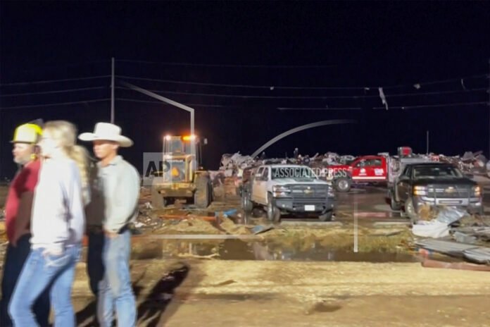 The worst damage appeared to be in Matador — a town of about 570 people about 70 miles (112 kilometers) northeast of Lubbock in Motley County. Homes were damaged, buildings were flattened and power lines were snapped in half. A restaurant’s walls were all knocked down, but the booths remained standing in what was called a “jaw-dropping” scene by Derek Delgado, a spokesman for Lubbock Fire Rescue, which is assisting the town.