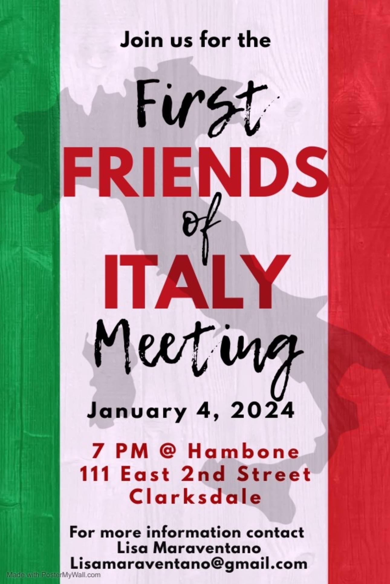 To join the festivities, simply mark your calendar for January 4, 2024, and head to Hambone at 7:00 PM. Whether you’re a seasoned aficionado of Italian culture or someone just starting their journey, the First FRIENDS of ITALY Meeting promises an evening of warmth, laughter, and the joy of shared interests.