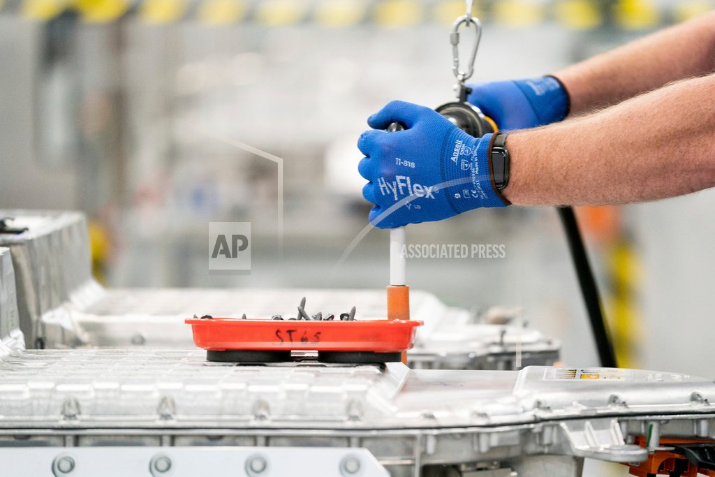 File - An employee works in the battery assembly hall at the BMW Spartanburg plant in Greer, S.C., Wednesday, October 19, 2022. On Thursday, the Commerce Department issues its first of three estimates of how the U.S. economy performed in the first quarter of 2023. (AP Photo/Sean Rayford, File)