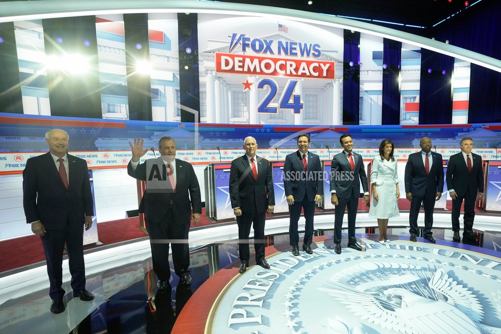 Cover Photo: Republican presidential candidates, from left, former Arkansas Gov. Asa Hutchinson, former New Jersey Gov. Chris Christie, former Vice President Mike Pence, Florida Gov. Ron DeSantis, businessman Vivek Ramaswamy, former U.N. Ambassador Nikki Haley, Sen. Tim Scott, R-S.C., and North Dakota Gov. Doug Burgum stand on stage before a Republican presidential primary debate hosted by FOX News Channel Wednesday, Aug. 23, 2023, in Milwaukee. (AP Photo/Morry Gash)