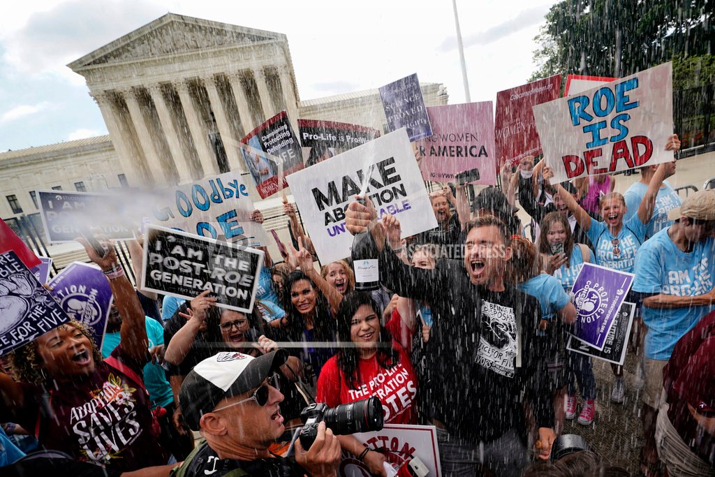 Cover Photo: Anti-abortion advocates celebrate outside the Supreme Court in Washington on June 24, 2022, following the court’s decision to end constitutional protections for abortion that had been in place nearly 50 years. One year ago, the U.S. Supreme Court rescinded a five-decade-old right to abortion, prompting a seismic shift in debates about politics, values, freedom and fairness. (AP Photo/Steve Helber)